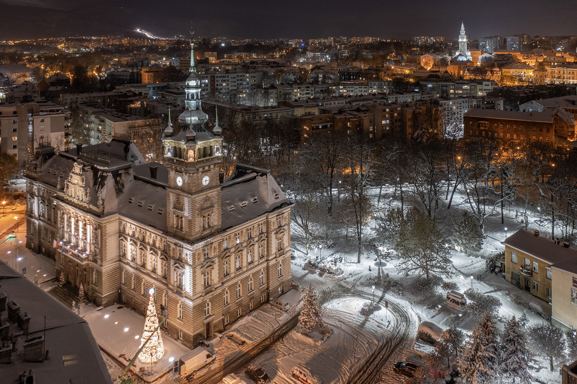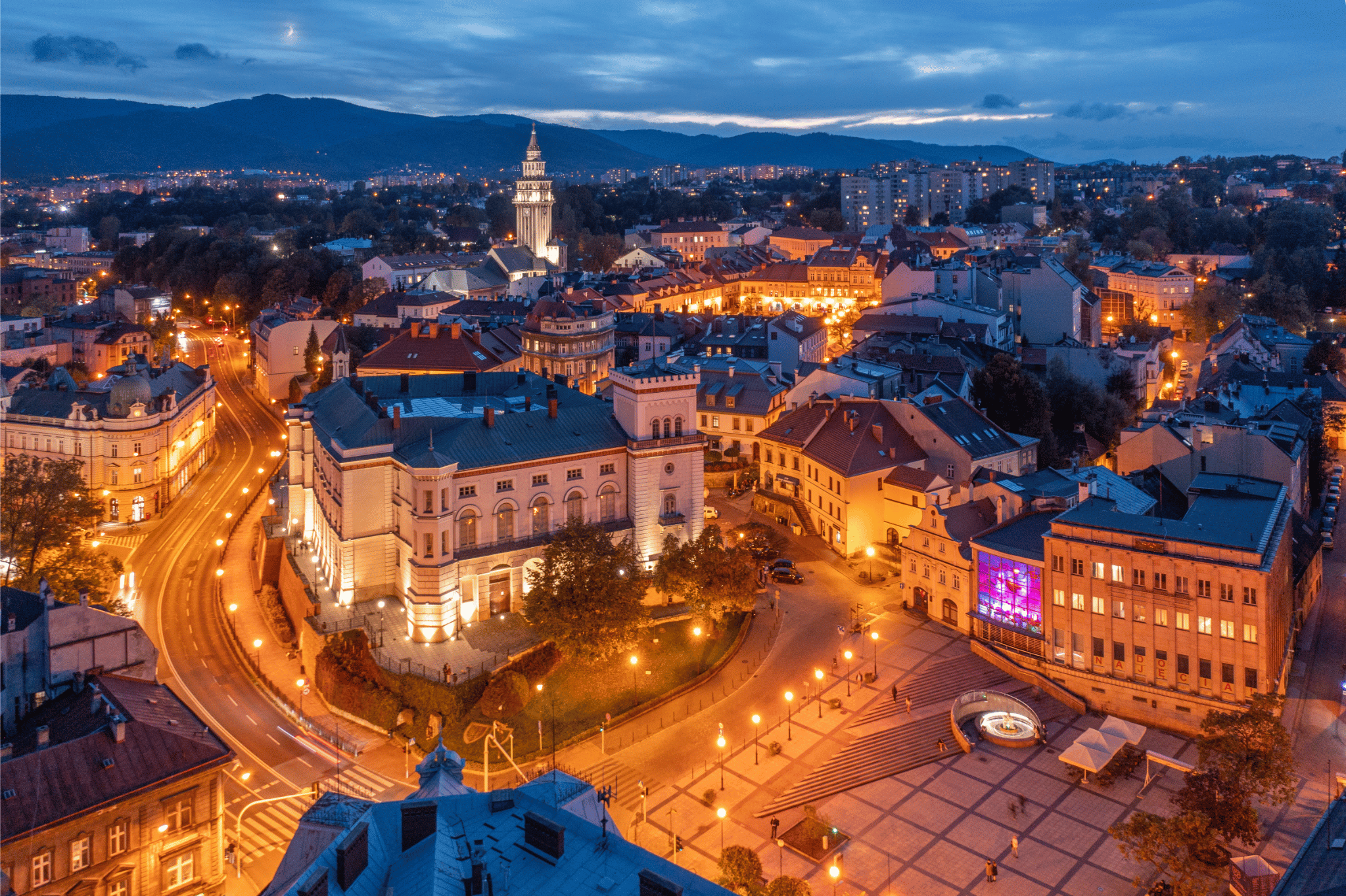 Zdjęcia przedstawiające Bielsko-Białą nocą